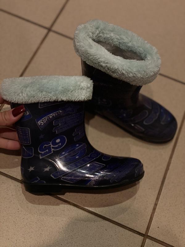 Гумові чобітки, підходять як хлопчику, так і дівчинці. Мають утеплену шкарпетку, що витягається. Стан ідеальний, носили дуже мало. Повномірний 27 розмір