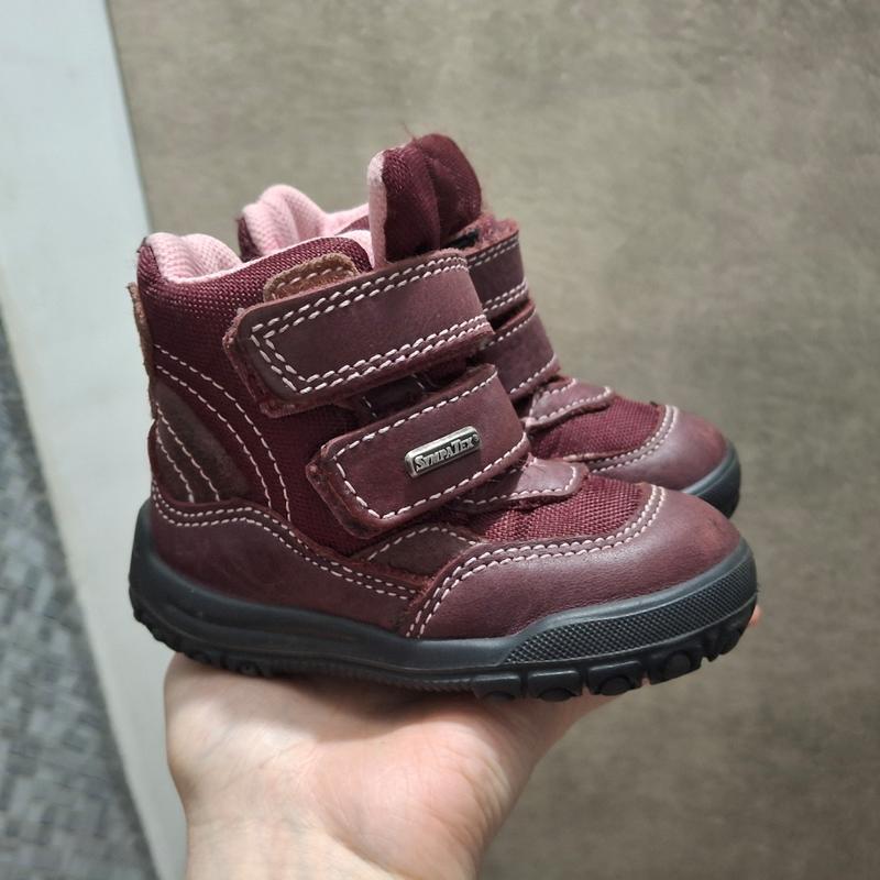 Зимові чобітки Twisty для дівчинки 21 розмір 13-13,5 см. Вишневий колір, шкіра, мембрана Sympatex, овчина, на липучках. Стан ідеал, теплющі.