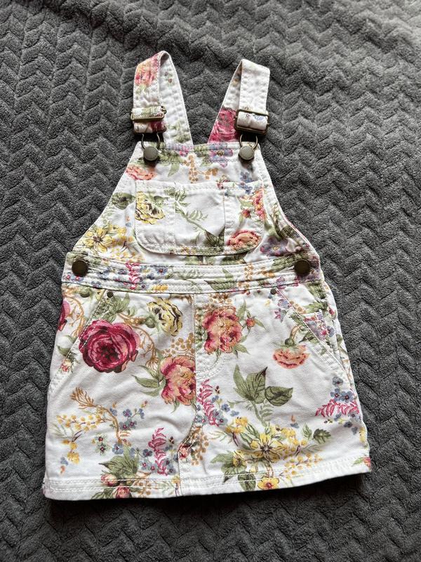 Белый сарафан с цветами, с карманами, состояние идеальное, без дефектов. Очень красивый. Подойдет на возраст от 9 месяцев до 2 лет за счет регулируемых лямок. Без лямок длина 36 см, лямки 23 см, ширина в поясе 27 см.
