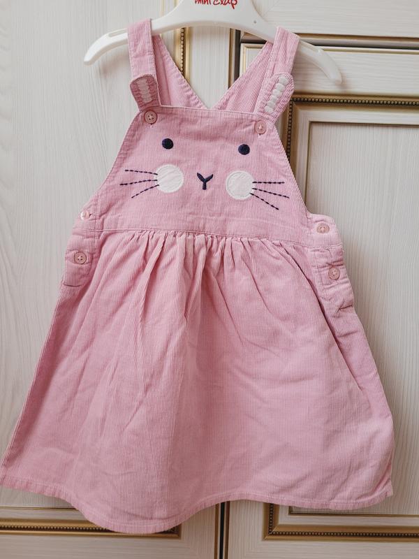 в идельном состоянии розовый сарафан с милым зайчиком для девочки. бретельки регулируются. есть подкладка. Размер 12-18 месяцев.