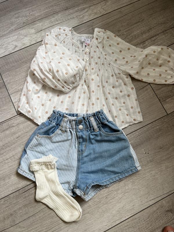 Джинсові шорти Зара. Дуже класні вільні але на худеньких )резинка може давити. На дівчинку 1-1,7 Носили мало бо в 1,8 вже тисла резинка