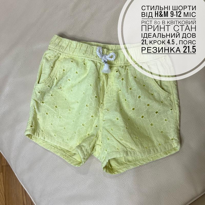 Стильні шорти від H&M 9-12 міс ріст 80 в квітковий принт стан ідеальний дов 21, крок 4.5 , пояс резинка 21.5