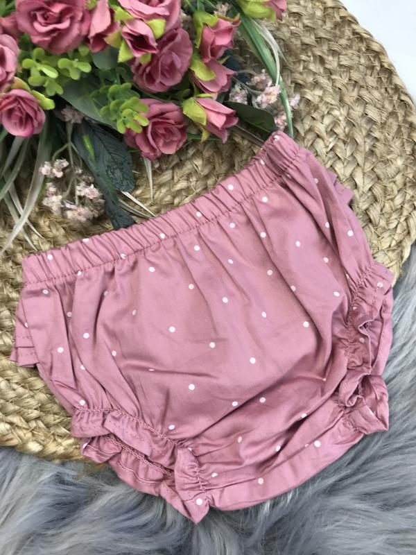 ⬇️ Опис ⬇️ ‼️ Мінімальна сума замовлення 100 грн. Якщо Ви бажаєте придбати більше однієї речі, будь-ласка, оформлюйте замовлення через кнопку «Додати до кошика» ✅ Блумери з рюшами на попі, вказано на новонародженого, будудь від 0 до 3 міс., а то й і до 6 міс., в стані нових. Напівобхват по резинці 19 - 29 см. Посадка 19,5 см.