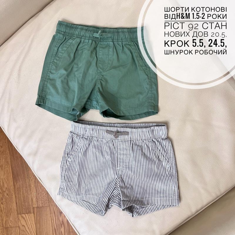 Шорти котонові відH&M 1.5-2 роки ріст 92 стан нових дов 20.5, крок 5.5, 24.5, шнурок робочий Бажано набором. Дешевше 285 грн