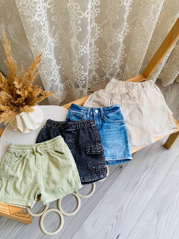 Шорти: 1. Зелені Зара на 12-18 місяців. 2. Сірі джинсові Некст на 12-18 місяців. 3. Сині джинсові на 1,5-2 роки. 4. Бежеві на 12-18 місяців. 5. Останні бежеві Зара на 1,5-2 роки. Стан ідеальний. 💰Ціна - 150 грн за шт.