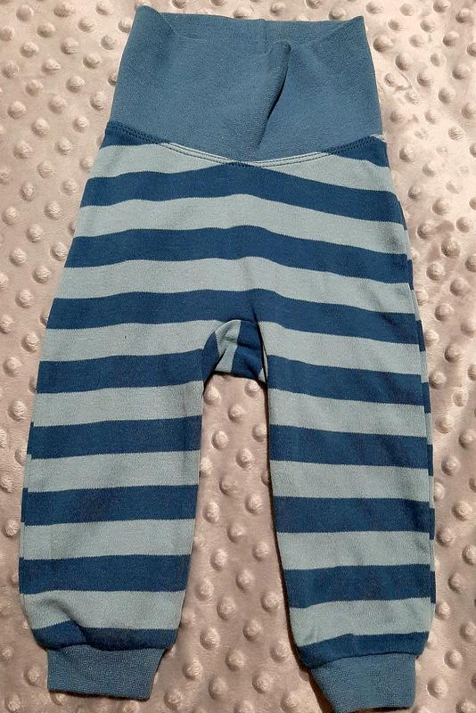 Трикотажные штанишки, хлопковые на удобной широкой резинке по линии талии, внизу на манжетах, не маломерят фирмы Lupilu. Размер: 62-67р. (2-6 мес) Состав: 100% хлопок Стан - новые, с бумажной бирочкой.