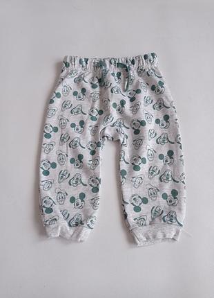 Класні штанці з Мікі Маус. М'які, приємні, затишні. Щільні, двонитка. Вгорі широка еластична манжета гумка. Шнурок не функціональний. Дуже гарне забарвлення. Заміри: талія 21 см, тягнеться до 30 см попа 29 см, тягнеться до 35 см посадка 19 см довжина 37 см кроковий 22 см бавовна