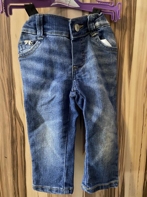 Джинси для дівчинки 9-12м Довжина від поясу до низу 53см Довжина кроку 23см Об‘єм поясу 34см тягнуться до 48см також є резиночка щоб зменшити об‘єм