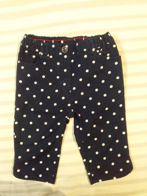 Темно сині штани у горошок на 9м. Ми носили їх як бріджі коли були постарше. 100% котон.