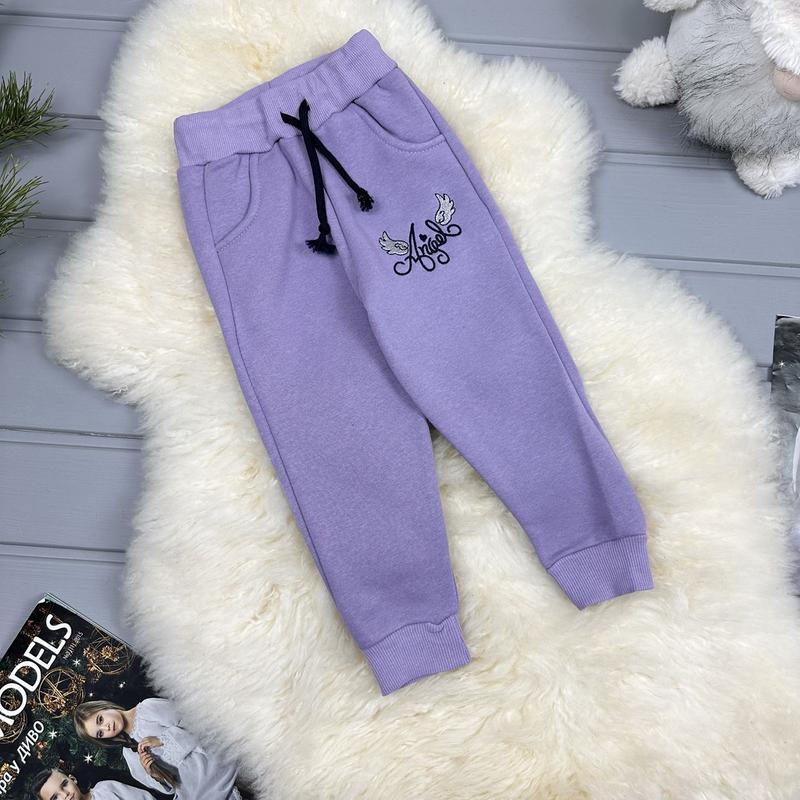 ❄️Штани Angel лілові з начосом. Тканина тринитка на флісі. Малюнок вишитий. В поясі є куліска. Кишеньки по докам. Суперова якість. Виробник Туреччина 📐Заміри: (80-86) - довж. 45 /крок 27 (92-98) - довж. 53 /крок 33 (104-110) - довж. 60/крок 40