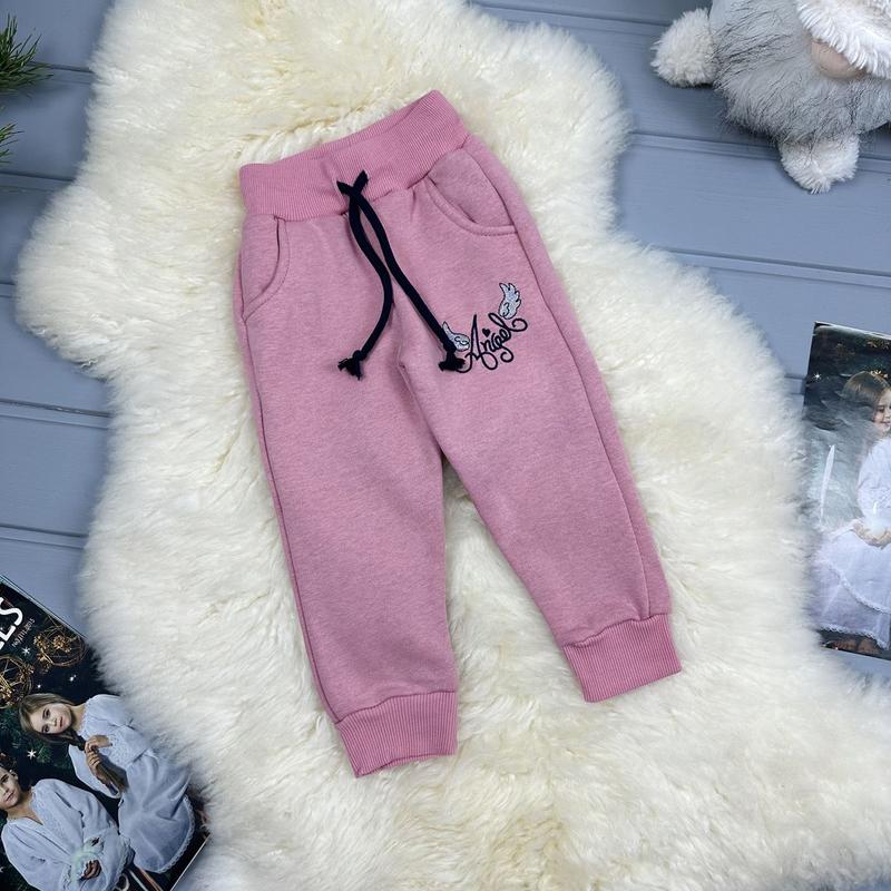 ❄️Штани Angel світло рожеві з начосом. Тканина тринитка на флісі. Малюнок вишитий. В поясі є куліска. Кишеньки по докам. Суперова якість. Виробник Туреччина 📐Заміри: (80-86) - довж. 47 /крок 27 (86-92) - довж. 48 /крок 30 (92-98) - довж. 50 /крок 31 (98-104) - довж. 58/крок 36