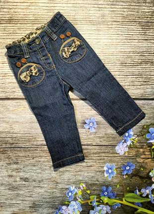 джинси з регулюванням на поясі з милим декором на кишенях трохи тягнуться