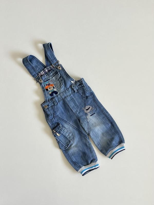 Розмір 18 міс, 86 см Довжина максимальна 68 см, крок 25 см, пот 25 см (на спинці резиночка, тому ще трохи тягнеться), поб 28 см Стан дуже хороший, немає ґудзика та закльопка з чобітком трохи подряпана