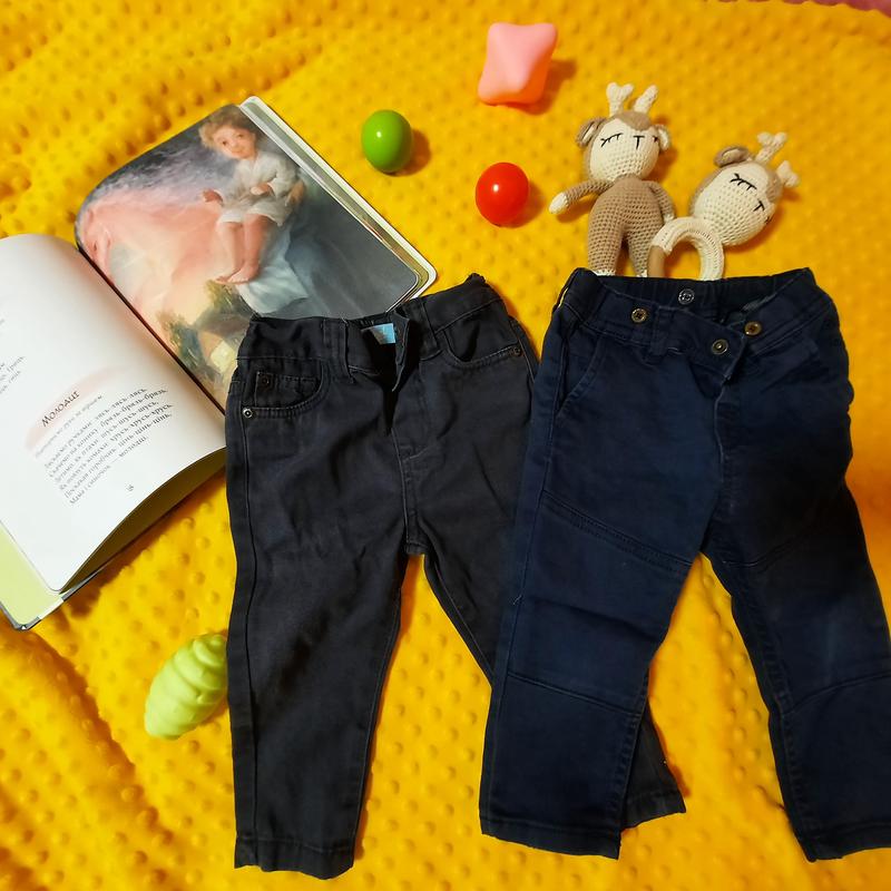 Крутые штанишки джинсы на кнопке. На 6-12 месяцев, можно подкачивать, в талии хорошая резинка не сползают и не давят в животик. Размер 80, до года.