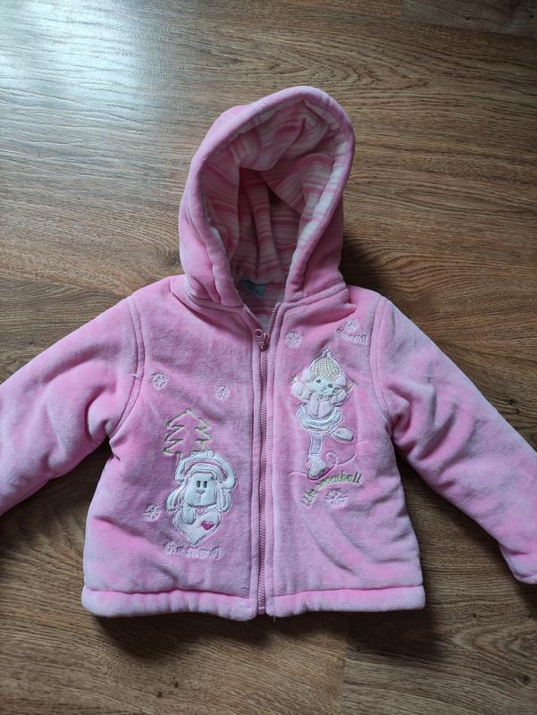 Нова куртка, м'яка, тепла і щільна, на 1-1,5 роки Заміри Довжина по спинці 32см Рукав від плеча 30см Ширина плечей 25 см Під руками ширина 29 см