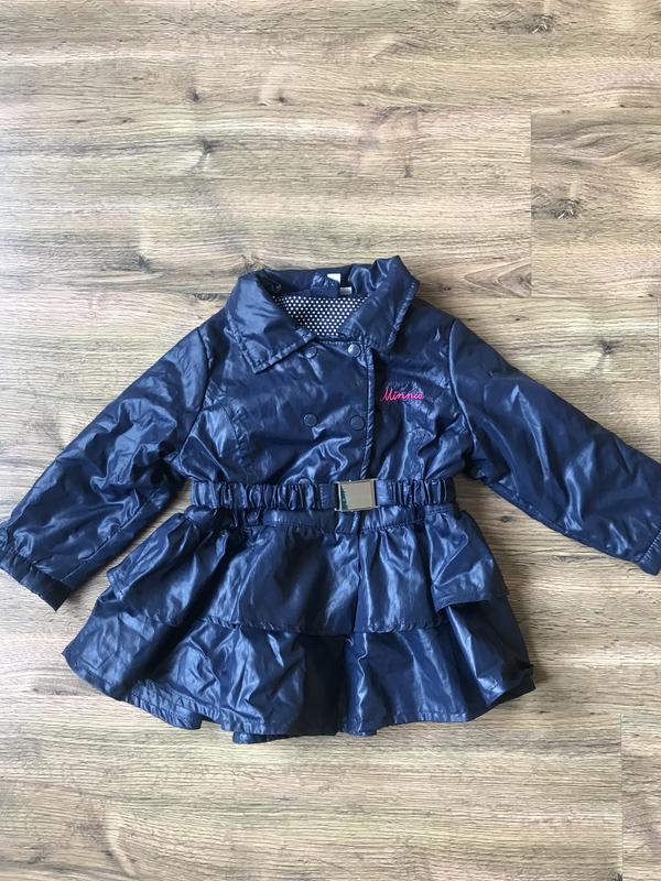 Синій плащик. Утеплений. З фодрочками. Довжина 43см. Довжина рукава 30см.,плечі 26см. Дефект на останньому фото - отпороли сердечко - дуже яскраве було...є капюшон,який ховається. Зазначений розмір 80.
