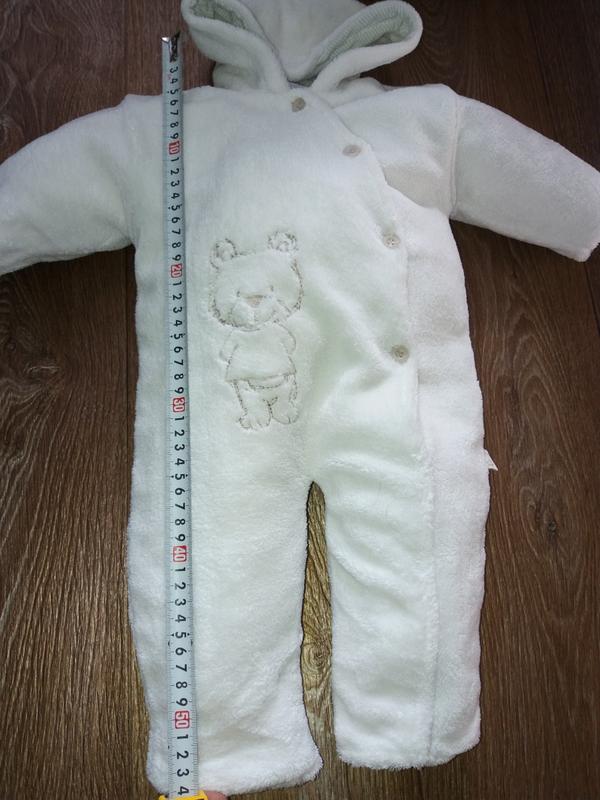 В ідеальному стані.розмір 2-4 місяці 62 див. Дуже якісний. Зовні плюшевий всередині трикотажна підкладка.підійде на 10-15 градусів. Колір білий.