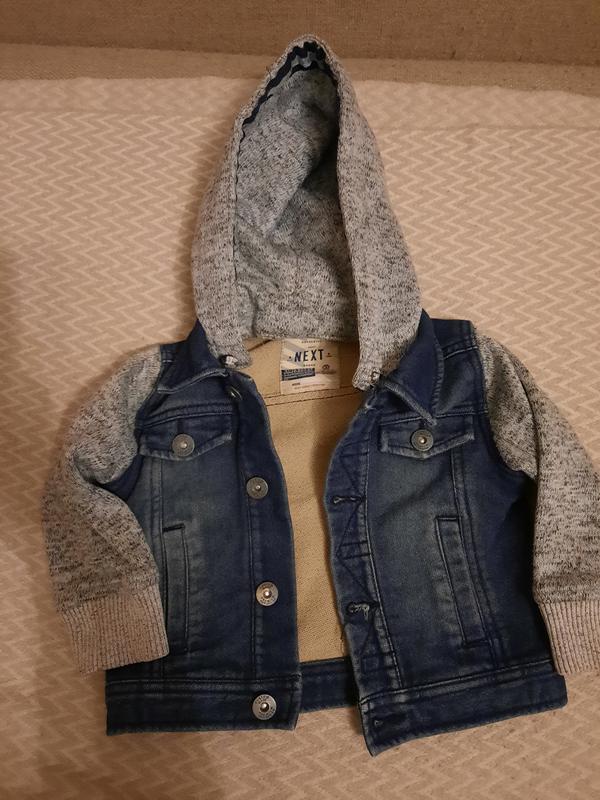 Джинсова куртка на хлопчика 86 розміру на 1,5-2 роки, капюшон відстібається , з утеплювачем подвійної нитки.