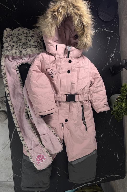 Комбінезон в дуже хорошому стані, є царапинка на защіпці , розмір 92 але мала носила при зрості 100. Теплий, всередині має ніби підтяжки на яких краще тримається комбінезон, можу надіслати додаткові фото. Шапочка в подарунок