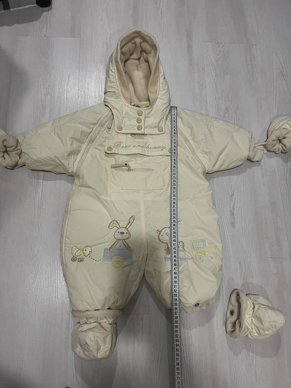 Зимовий комбінезон молочного кольору відомої фірми. Дуже зручний та якісний. Підійде як дівчинці так і хлопчику.