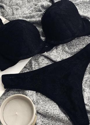 Комплект белья женский черный топ-бюстгальтер и трусы код п697