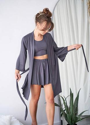 Легкий домашній комплект трійка з віскози. халат топ шорти. халат та піжама з віскози
