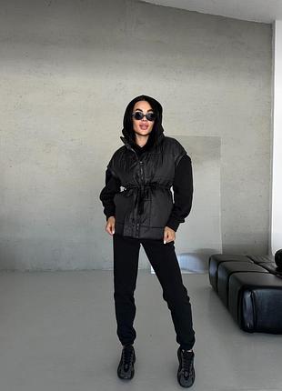 Неймовірно крутий костюмчик трійка з люксової фактурної тканини капітон, спортивний костюм, зіп худі джоггери