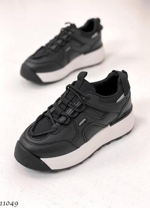 Черные кожаные кроссовки на толстой грубой массивной подошве платформы