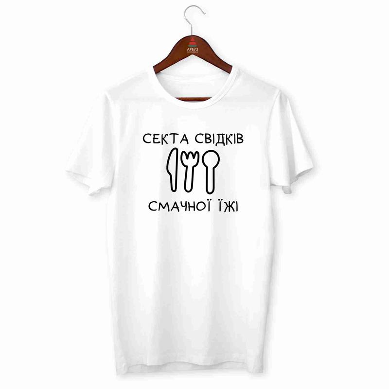 Футболка чоловіча з прикольним принтом "секта свідків смачної їжі" push it