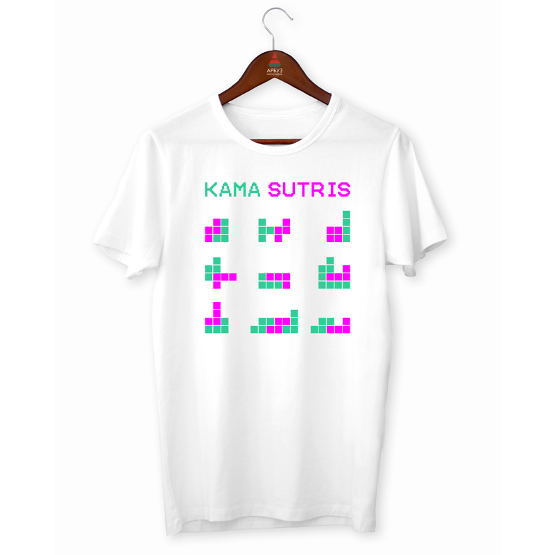 Футболка с оригинальным принтом "kama sutris. тетрис. kama sutra. каме сурра" push it. фут...