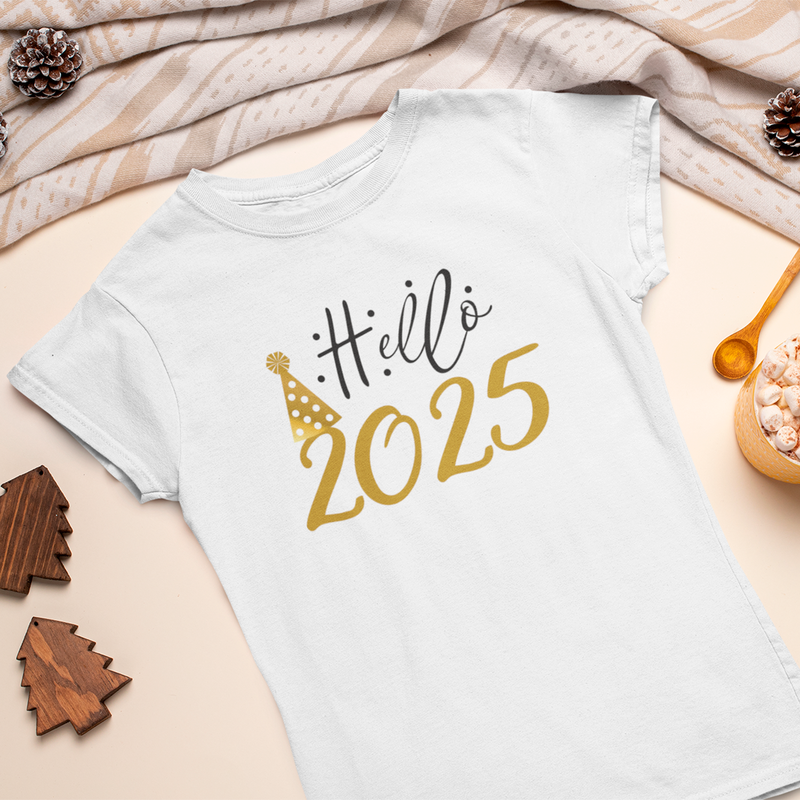 Футболка біла з оригінальним новорічним принтом "hello 2025" push it
