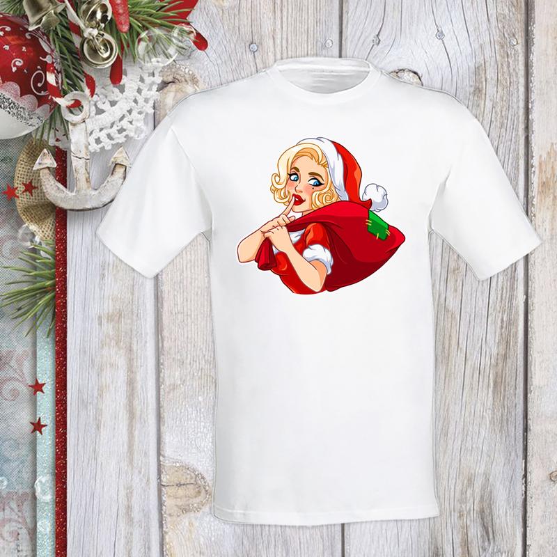 Футболка з новорічним принтом мерилін монро з мішком push it s, білий