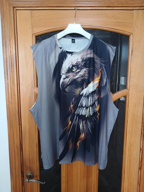 Футболка з принтом орла для великого чоловіка (груди 150-170 см). Розмір 6XL. Нова, бежевого кольору. Посилкова, не вгадав розмір.