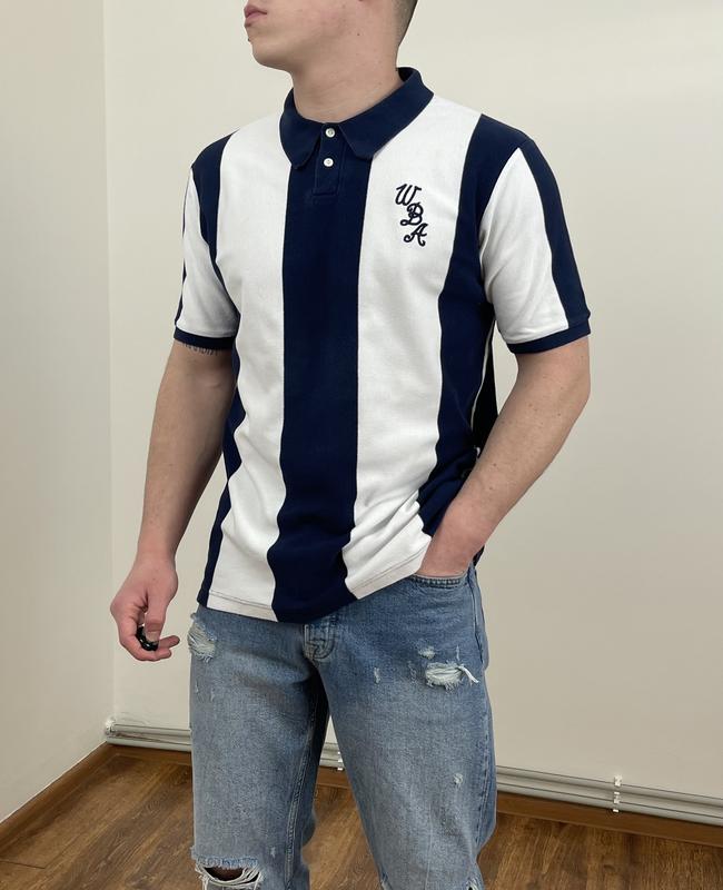 Біле мʼяке поло scone draw в темно синю смужку, official retro, олд мані, old money, логот...