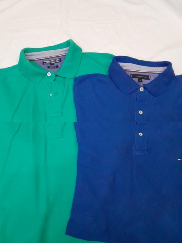футболки 2 шт.розмір хл. колір хороший не вицветший.Замери: ширина плеч 49 ширина под рукавами 58. длина 73 и 75(спинка) длина рукава 22. Под рукавами трохи подремонтировано.зашито.