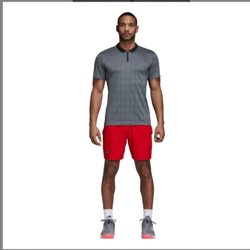 Чоловіча спортивна футболка -поло з короткими рукавами, відкладним контрастним комірцем та застібкою на змійку .На рукаві та спинці є фірмові логотипи. Стан ідеальний без пошкоджень. Заміри довжина -70см., довжина рукава -21.5см., ширина переду -48.5см., ширина плечей -43.5см.