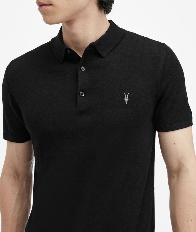 Черная футболка поло allsaints шерстяная джемпер свитер с коротким рукавом
