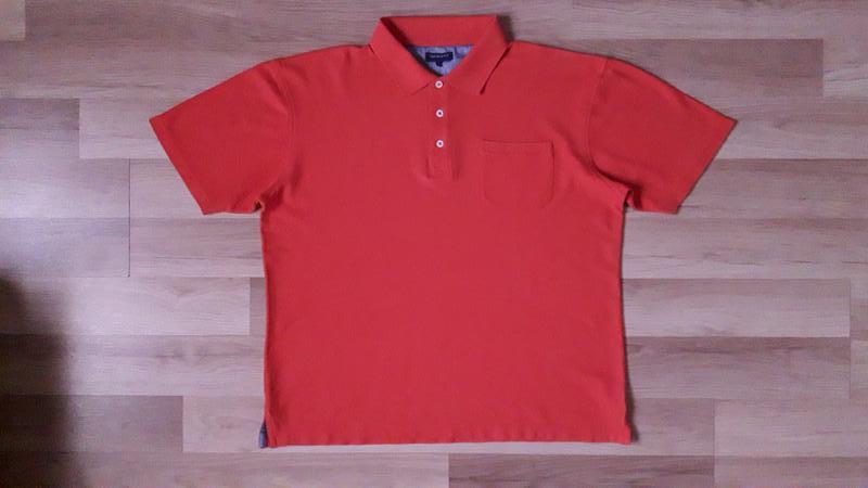 Нова фірмова теніска, без паперових етикеток. Колір насичений, але не такий яскравий як на головному фото, але і не такий тьмяний як на наступних. Точний відтінок передати не вийшло. Тканина не товста,імовірно котон(бирки зі складом немає, напевно було вказано на паперовій етикетці). На середній/низький зріст. Розмір вказано Л, за замірами підходить на ХЛ. Орієнтуйтеся на заміри. Заміри: ПОГ 60 ПІТ 58 плечі 53 довжина виробу 65. довжина рукава 22. Дивіться в моїх оголошеннях теніски поло і ін. відомих брендів.