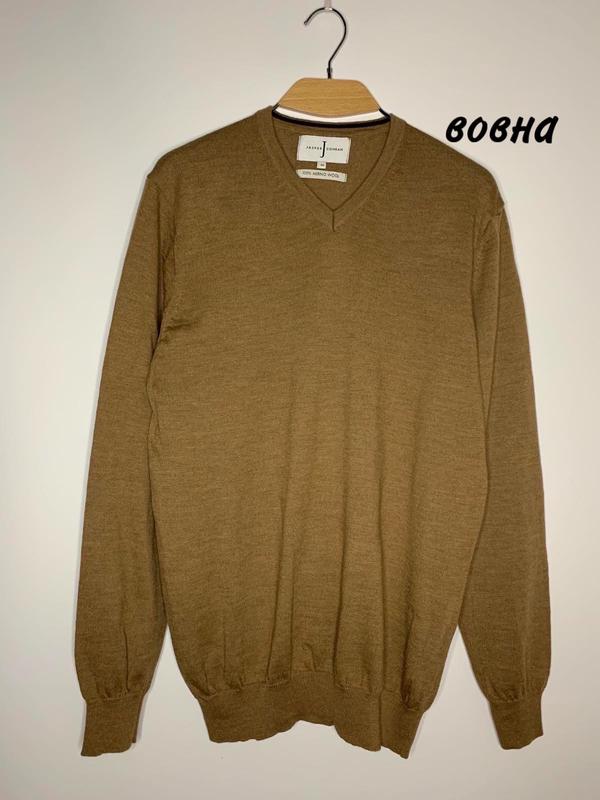 100% вовна, приємна до тіла. Полотно досить щільне. Красивий колір кемел. Пуловер новий, але на останніх 2-х світлинах нюанс-внизу з лівого боку зашиті спущені петельки. Ціна з урахуванням нюансу. Заміри: Довжина-74 Плечі-45 Довжина рукава-65 Напівобхват грудей-52 Заходьте на сторінку і дивіться інші мої оголошення! Є кашемірові і вовняні вироби. Підписуйтесь, т. к. в обраному не знайдете-видаляю для перезавантаження! !!! Доставка здійснюється Новою Поштою, Укрпоштою та тільки по повній передоплаті!!!