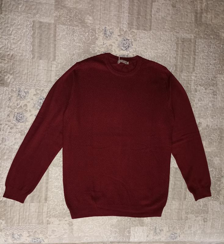 джемпер Cotton & Silk (заадкомец Est.1973), с круглой горловиной, рукав и спина гладкий трикотаж, перед-жаккард, бордо (вишня), 80% вискоза, 20% нейлон, размер XL, плечи 43см, груди 54см, длина 72см, длина рукава 65 см. растягивается умеренно