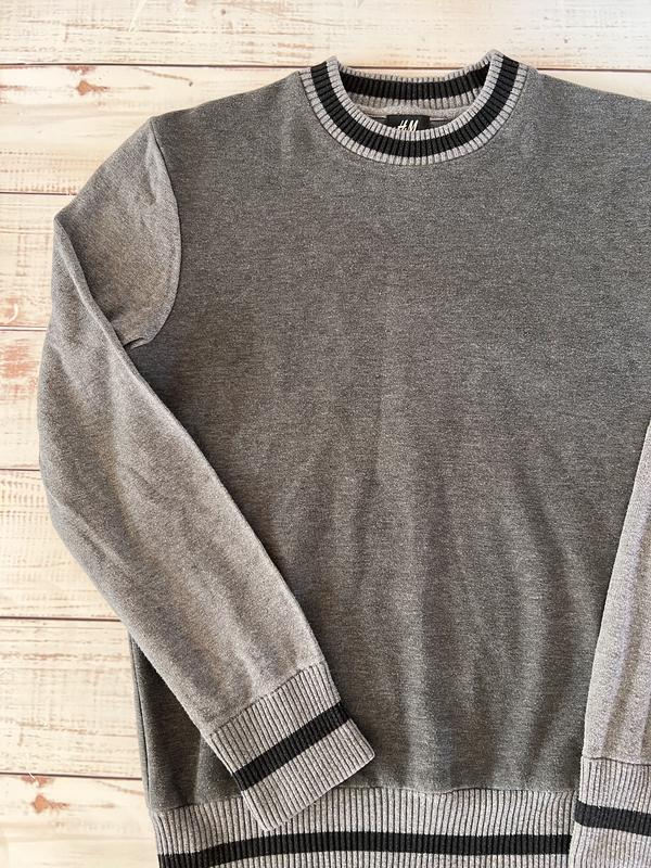 Мужской серый джемпер с манжетами внизу и на рукавах.