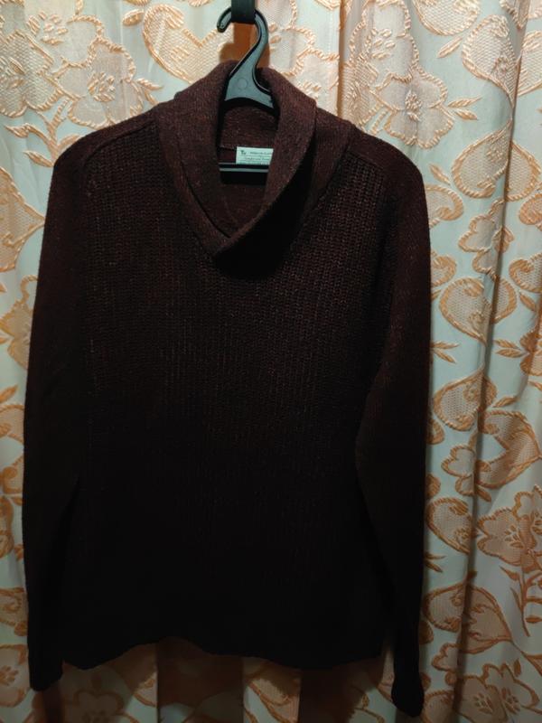 довжина -72;пог-74; рукав-85,від воротника;низ-70; спереду груба в'язка; ззаду дрібніша;колір бордовий з чорним.