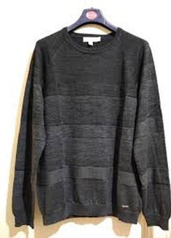 Чоловічий чорний светр CALVIN KLEIN MERINO OMBRE з круглим вирізом зі змішаної вовни — стильна та елегантна модель обтислого крою з тонкої змішаної вовни в широку горизонтальну смужку, чудово поєднується із сорочкою, джинсами та штанами чиносом Кельвін Кляйн. оригінал 💯 светр-джемпер із тонкої вовни мериноса 50% шерсть мериноса, 50% акрил завдяки крою добре сидить на фігурі оригінальний забарвлення зі смуг чорного та відтінків сірого металева нашивка з монограмою СК Манжети рукавів і низ із текстильними гумками точна відповідність розміру Стан: новий, без бирок. Заміри: Пог 60 см, ширина внизу 47 см, плече + рукав 86 см, довжина 73 см