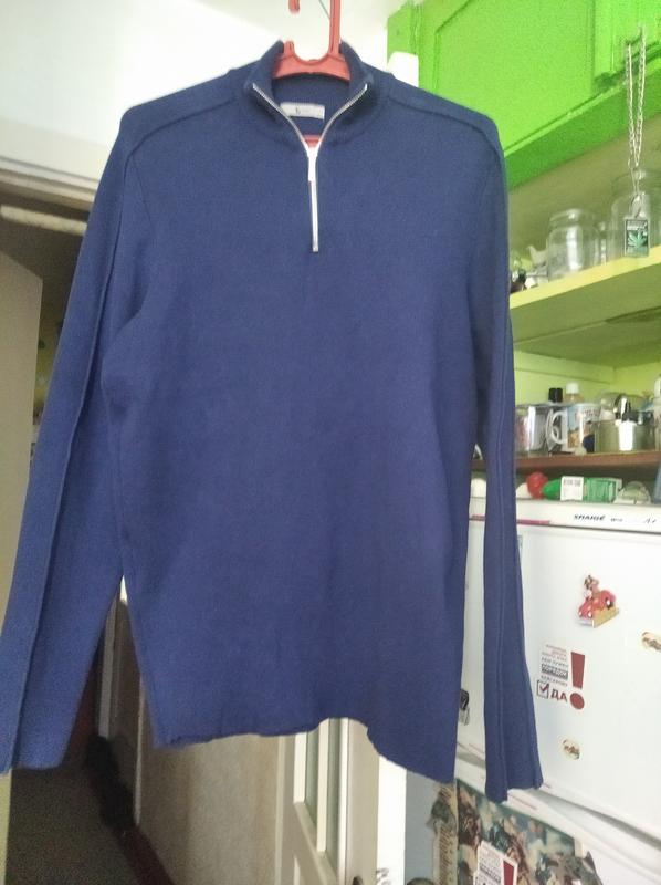 Отличное состояние, 100% Коттон, на молнии у горловины, цвет средне- синий(фото светлее вышли), низ и рукава прямые. Размер 46-48, плечи 47, Пог -57, рукав 66, длинна 70.