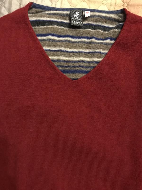 Теплый и качественный White Stuff пуловер мужской актуального цвета, на спине фирма верх сделала удвоенным, что добавляет тепло в плечи
