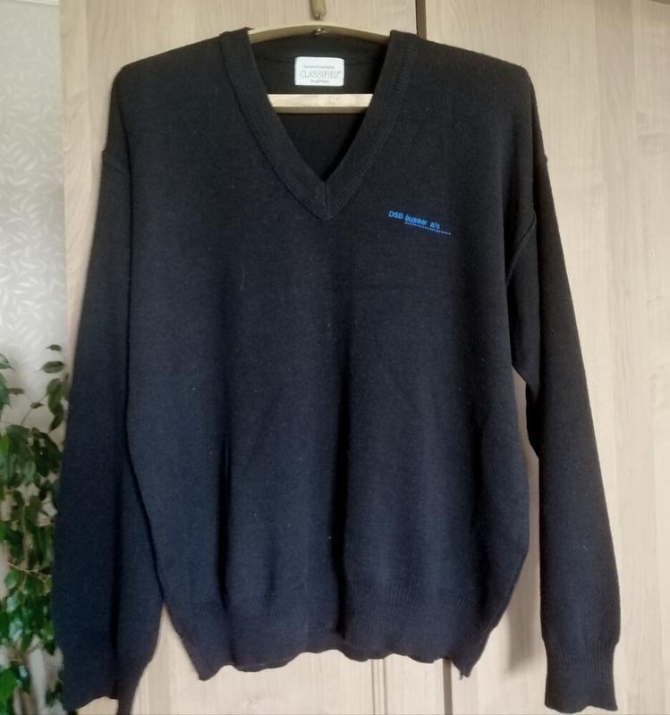 Брендовий якісний теплий діловий джемпер у відмінному стані. Замір: ПОГ-63, плечи-58, рукава від горловини-79, довжина-67. Добре тягнеться. Склад: 50% вовна, 50% акрил.