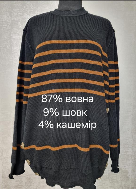 Теплий та затишний вовняний джемпер (унісекс) від італійського виробника. Джемпер виготовлено з якісного вовняного трикотажу середньої щільності, ближче до товстого. Крім вовни, до складу трикотажу також входять шовк(9%) та кашемір (4%). Спереду по боках розташовані планки на ґудзиках, що розстібаються. Ґудзики брендовані, з логотипом. Чий бренд - не знайшла. Хто знає - підкажіть,буду вдячна. Розмір M оверсайз груди 58-64 см талія 56-60 см стегна 44-64 см довжина виробу 70 см рукав 61 см плечі 41-51 см Буде ще багато фірмових речей. Підписуйтесь! Майте на увазі, що поки ви додаєте товар в "вибране ", хтось його вже купує. І ви можете упустити свій шанс придбати вподобану річ. Дешевше купувати відразу декілька речей - таким чином, ви економите на доставці. При купівлі п'яти і більше речей доставка безкоштовна. Вдалих і приємних покупок! 29.12.24