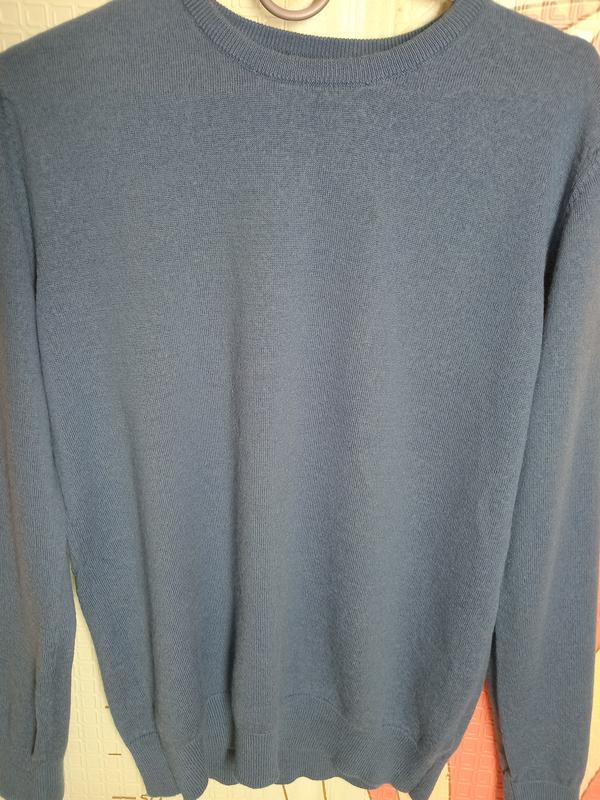 джемпер чоловічий темно-блакитного кольору, стан дуже гарний. Довжина 63, ширина 47, рукав 60, виготовлений 50/50 з тонкої овечої вовни та акрилу