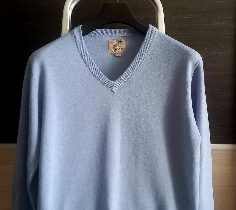 Мужской шерстяной пуловер великолепного качества от американского бренда MCS Marlboro Classics Красивого голубого цвета. Связан гладкой вязкой. Низ рукава и пуловера - резинка Состав - шерсть 100%. Размер - Л Замеры: ПОГ - 56 см, Длина - 70 см. Длина рукава - 64 см (в том числе резинка 6 см). Ширина плечей - 46 см Американский бренд MCS Marlboro Classics основанный в 1970 г,