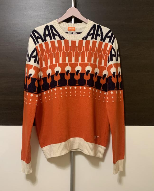 Чудовий , яскравий джемпер , італійського виробника в ідеальному стані. Зроблений з якісної вовни. Дуже тепла річ. Мені здається , що він унісекс, красиво і стильно виглядає. Така річ зробить лубий лук яскравим і помітним. Розмір вказано-M, але орієнтуйтеся на заміри. Плечі-45, під пахвами-56, рукав-72, довжина-73. Питайте…